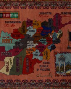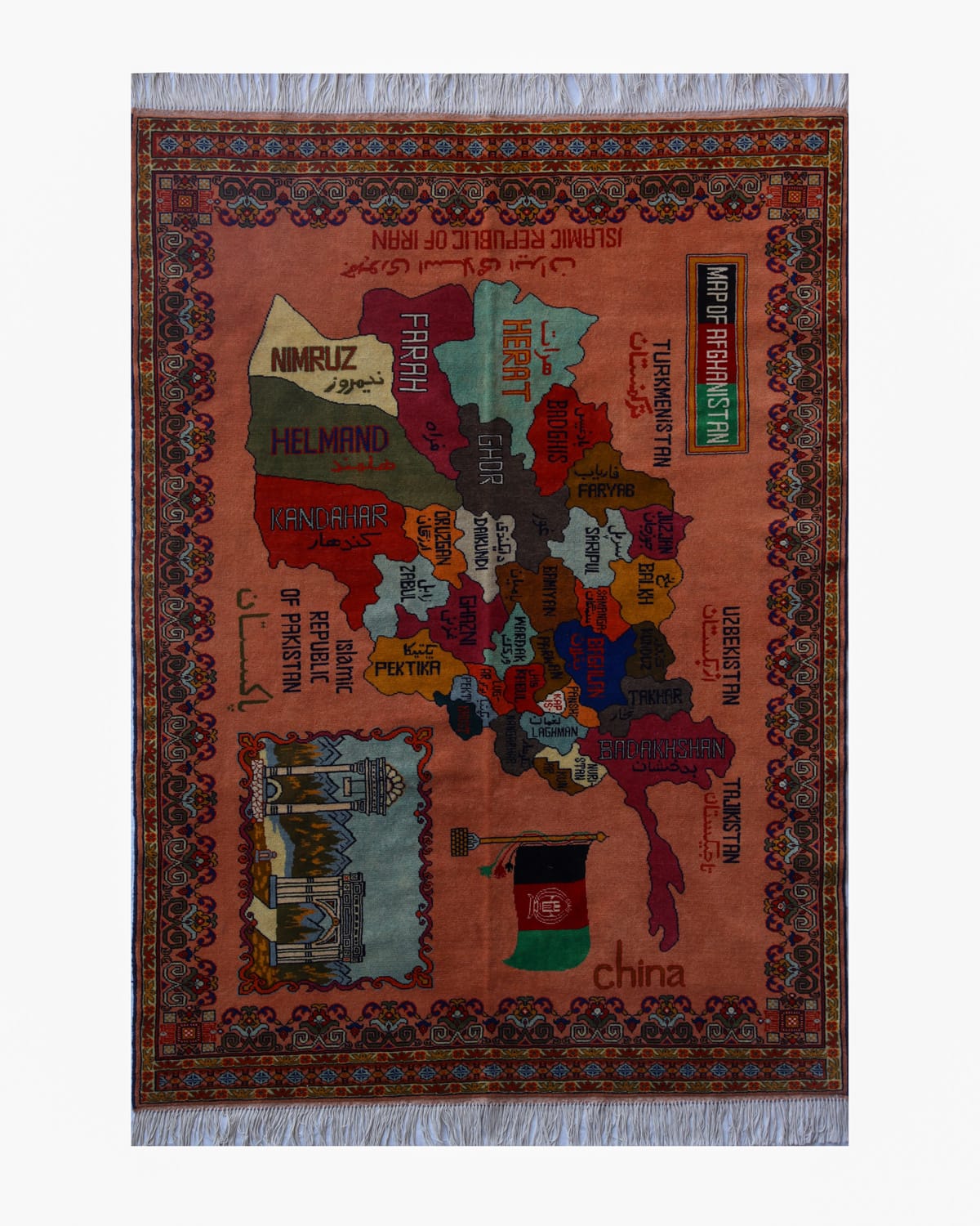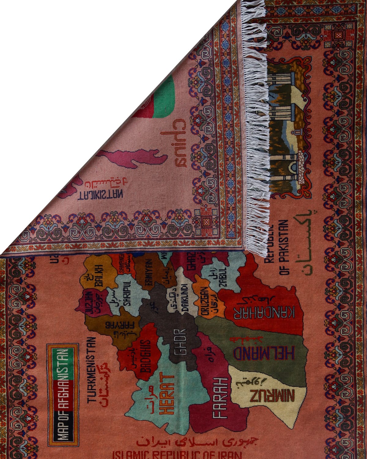 Handmade Wool Rug Afghanistan Map Design Material: 100% pure natural wool, locally sourced. Design: Traditional “Afghanistan” pattern in camel tones. Weave: 50×50 (high-density hand-knotted). Size: 75×54 inches (1.90×1.37 meters). Weight: 5.2 kg (11.5 lbs).