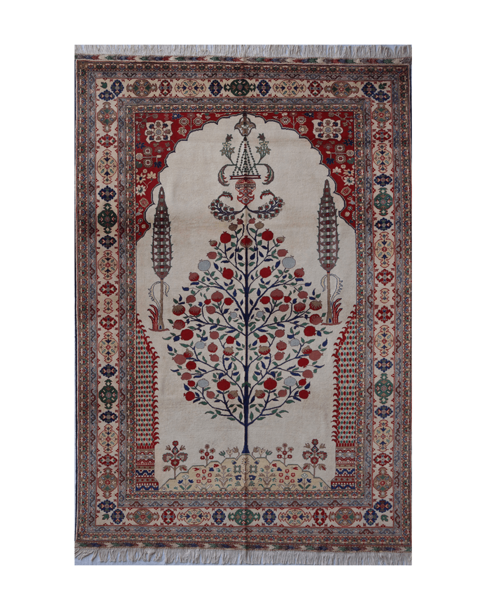 Carpet Afghani Pomegranate Tree Carpet 9.8 × 7.5 feet.
