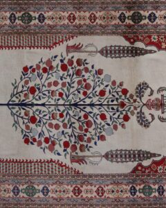 Material: 100% Wool 9.8 × 7.5 feet. Size: 300 × 230 cm | Weight: 19 kg Weave: 40×40 Knot Density for Durability ✔ Color: Cream & Red | Natural Dyes This luxurious Afghan rug features a traditional Pomegranate Tree design, symbolizing prosperity and elegance. Handwoven by skilled artisans, it’s perfect for living rooms, offices, and collector’s spaces. Made with natural wool and eco-friendly dyes, this piece blends heritage with modern sophistication.